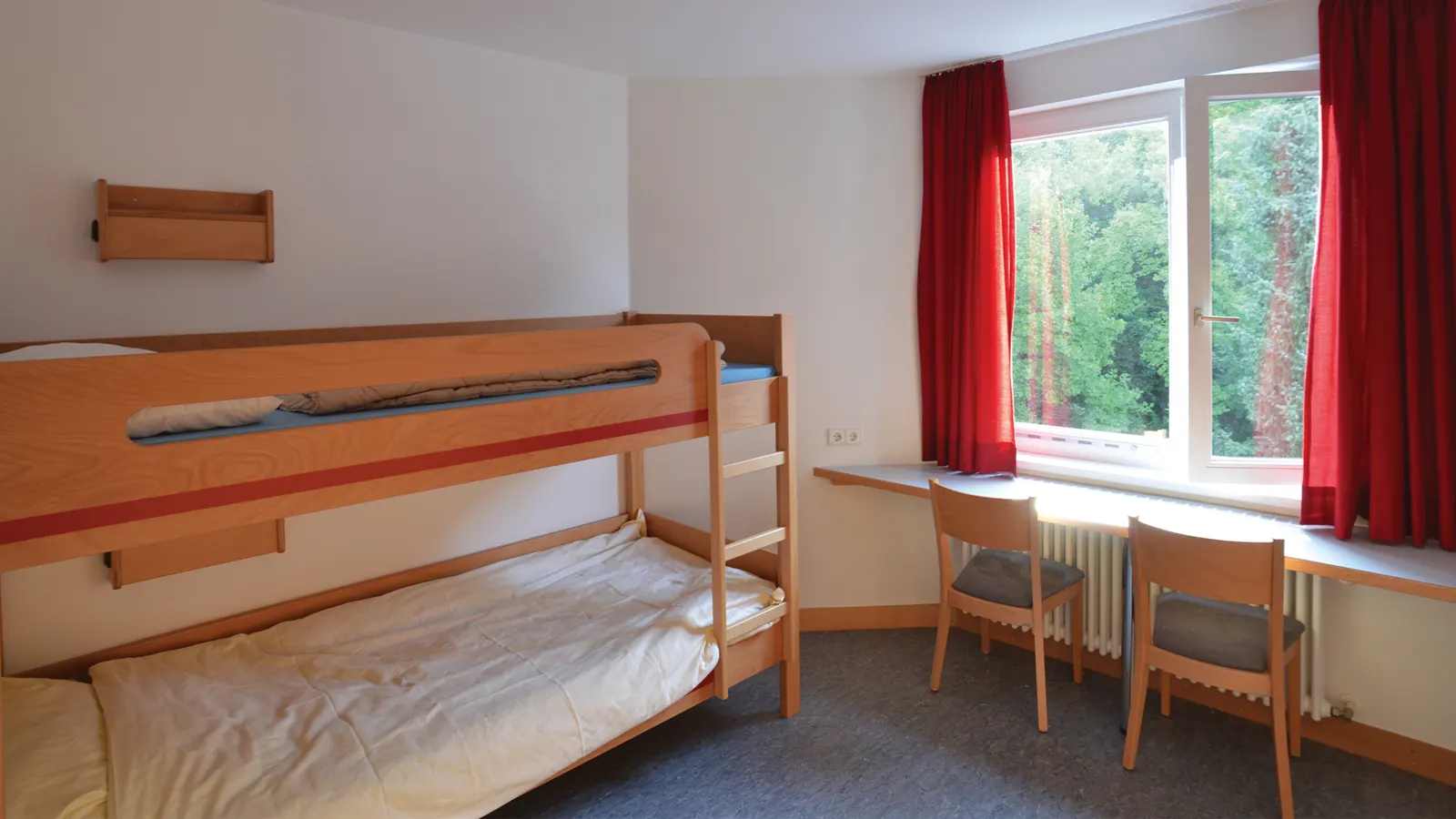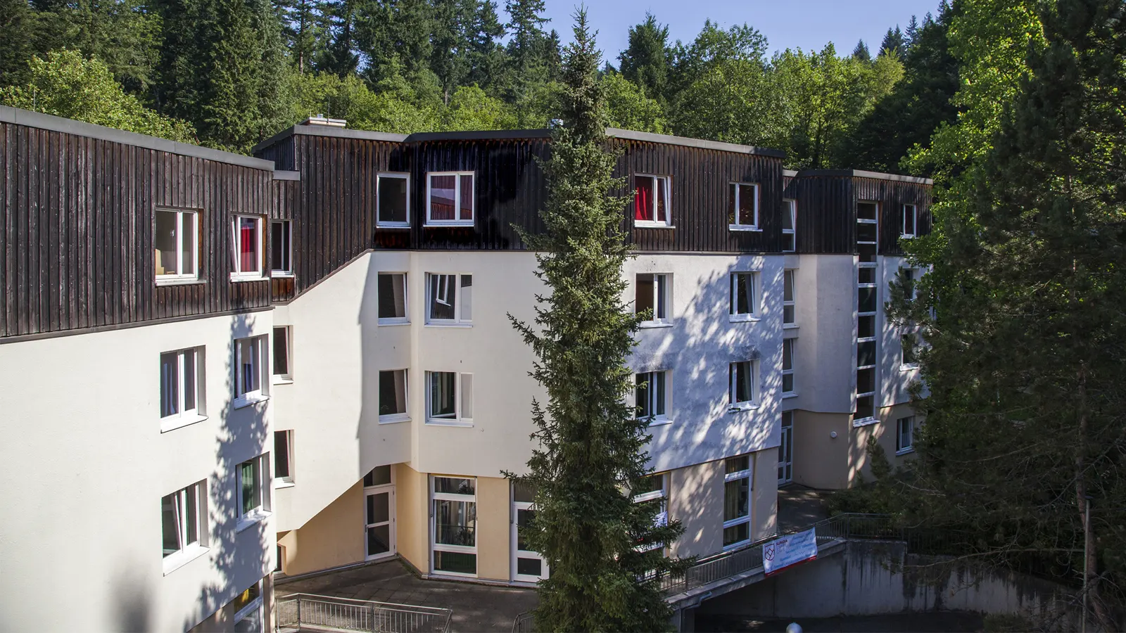 Alojamiento, comedor y clases están en el mismo edificio (a excepción de unas pocas aulas, que están a 10 minutos andando). Este centro de estudios está rodeado de naturaleza en un entorno tranquilo y seguro, y a su vez está a poca distancia en autobús del centro de Freiburg.
