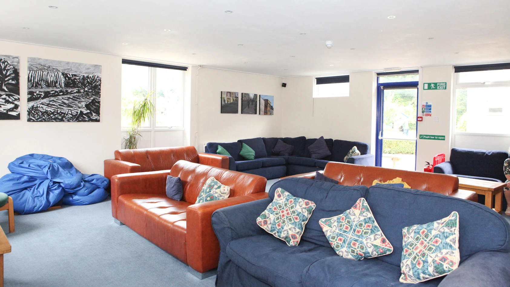 Hay varias residencias con habitaciones individuales o compartidas (hasta 6 camas), salas comunes con TV, sofás y juegos, ping pong, futbolín, servicio de lavandería, y Wifi.