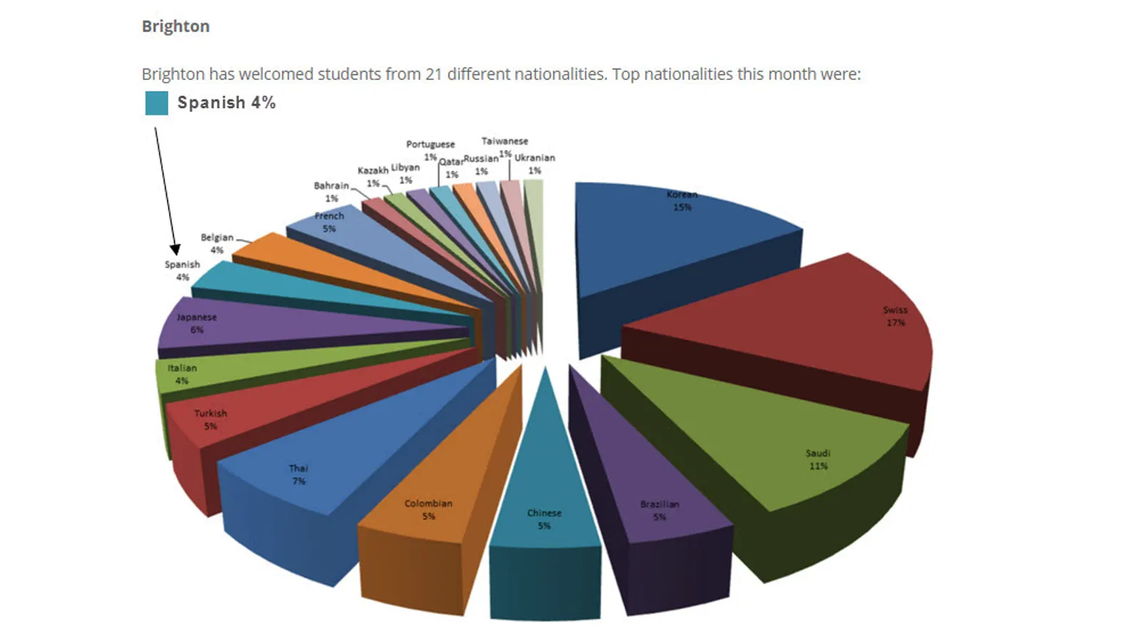 • Las 10 primeras nacionalidades son: Arabia Saudí, Turquía, Tailandia, Suiza, China, Kazajastán, Corea, Japón, Italia y Francia, lo que conlleva una gran variedad de nacionalidades con una única lengua común: el Inglés