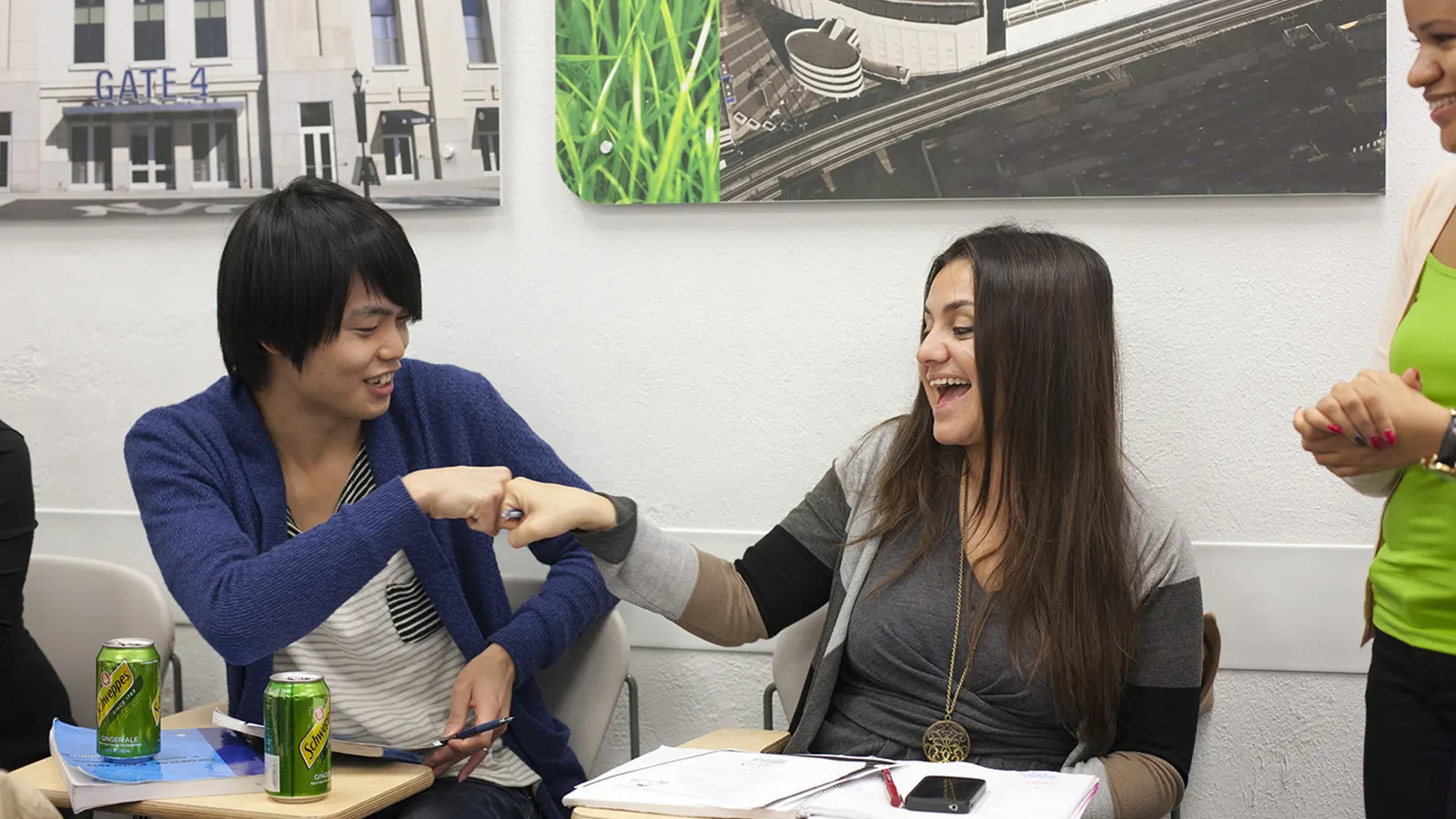 Los estudiantes disponen de zonas para relajarse, dos salas de ordenadores para su uso libre, una biblioteca y una zona con recursos informáticos para practicar el idioma después de clase.