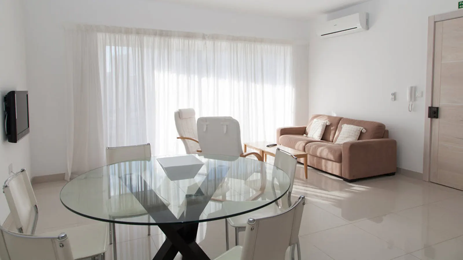 Bloque de 7 apartamentos modernos, bien amueblados. Todos los apartamentos son luminosos y muy espaciosos e incluyen cocina, comedor y sala de estar. Todos los apartamentos están equipados con TV, reproductor de DVD, conexión WiFi gratuita y habitaciones con aire acondicionado.