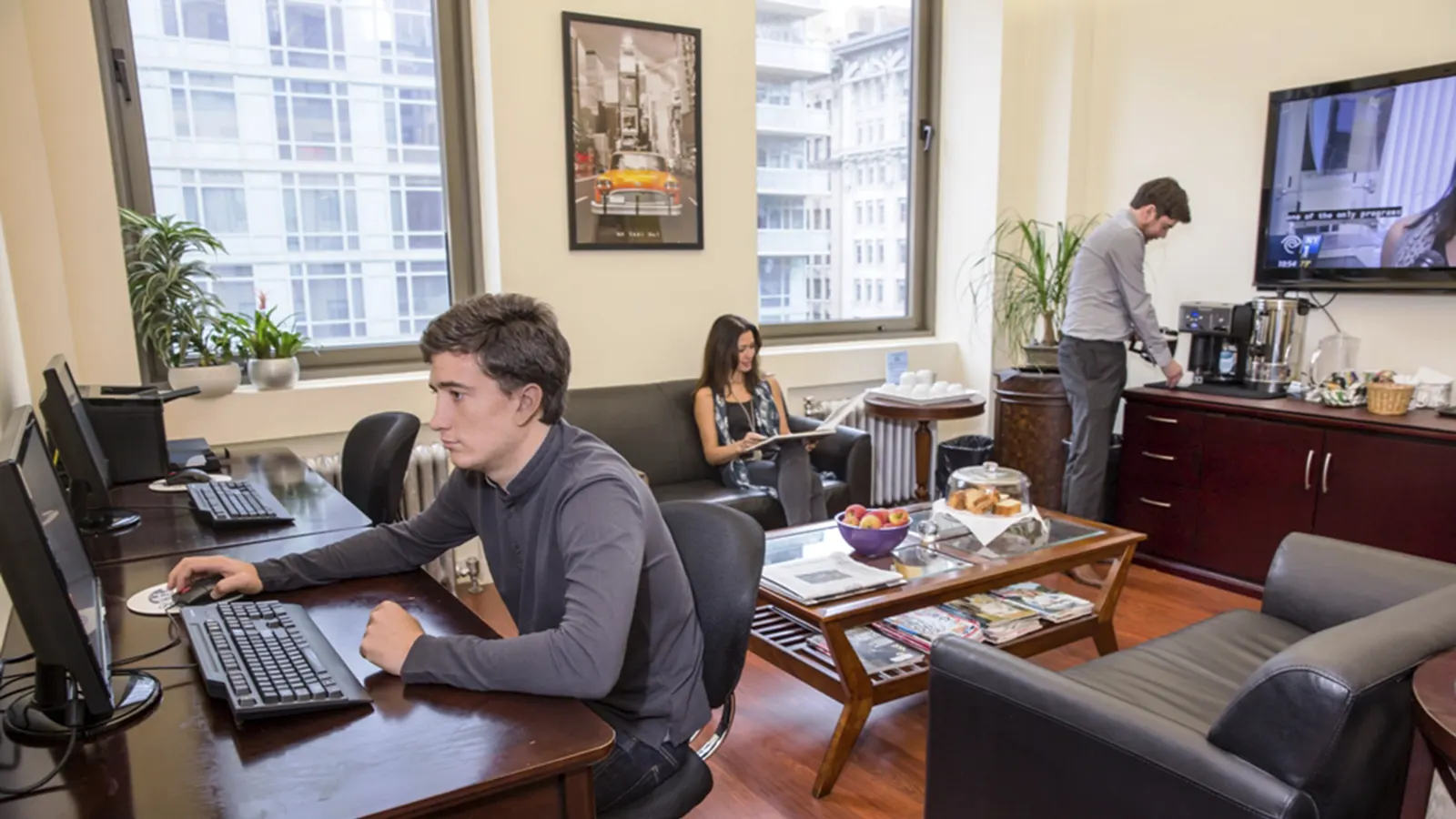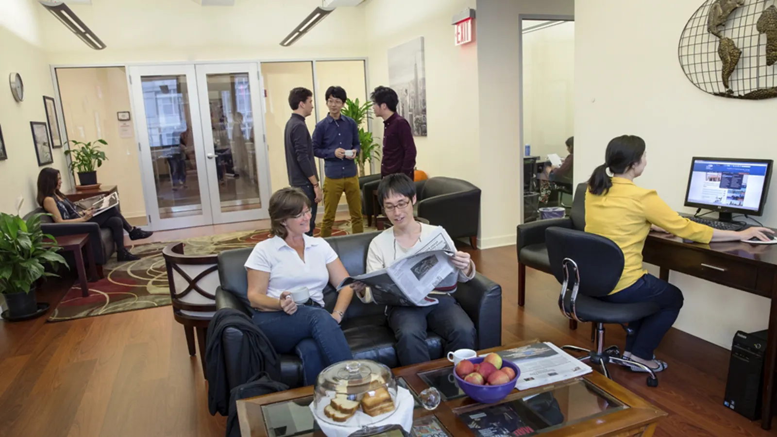 Los estudiantes que realizan el curso de inglés para ejecutivos tienen una sala exclusiva para ellos en un entorno elegante, tranquilo y agradable con todos los servicios para ejecutivos: impresora, fax, fotocopiadora, ordenadores y zonas de descanso dónde conocer a estudiantes profesionales de otros países.