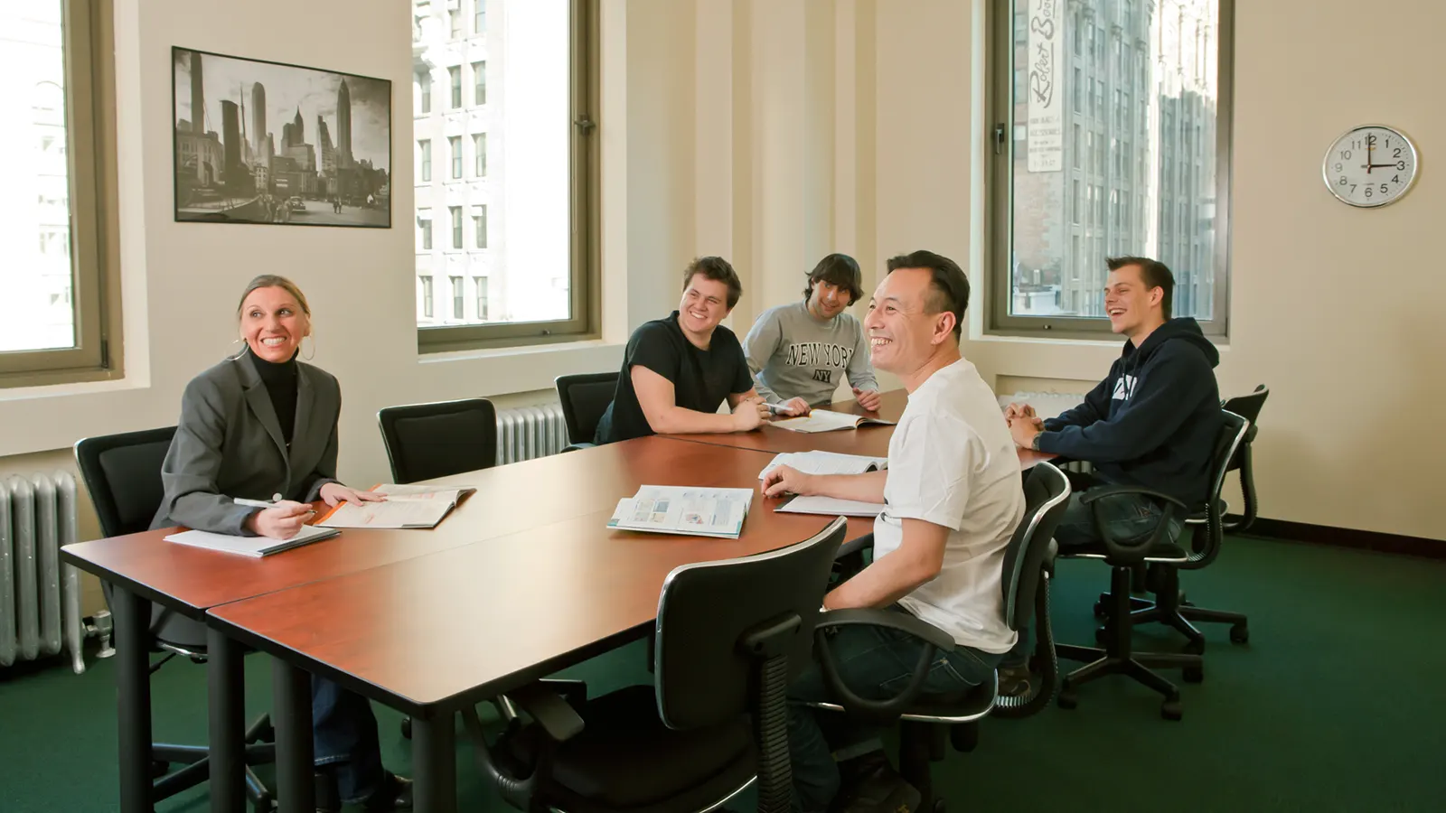 El curso de inglés en Nueva York para profesionales, ejecutivos y adultos se imparte en grupos reducidos de máximo 5 personas por clase. Los grupos se forman con la máxima antelación, a partir de un cuestionario en el que se detalla el nivel de idioma, las expectativas del estudiante y sus necesidades. De esta forma el curso se centra especialmente en lo que el estudiante quiere y necesita para avanzar con rapidez en el aprendizaje del idioma.