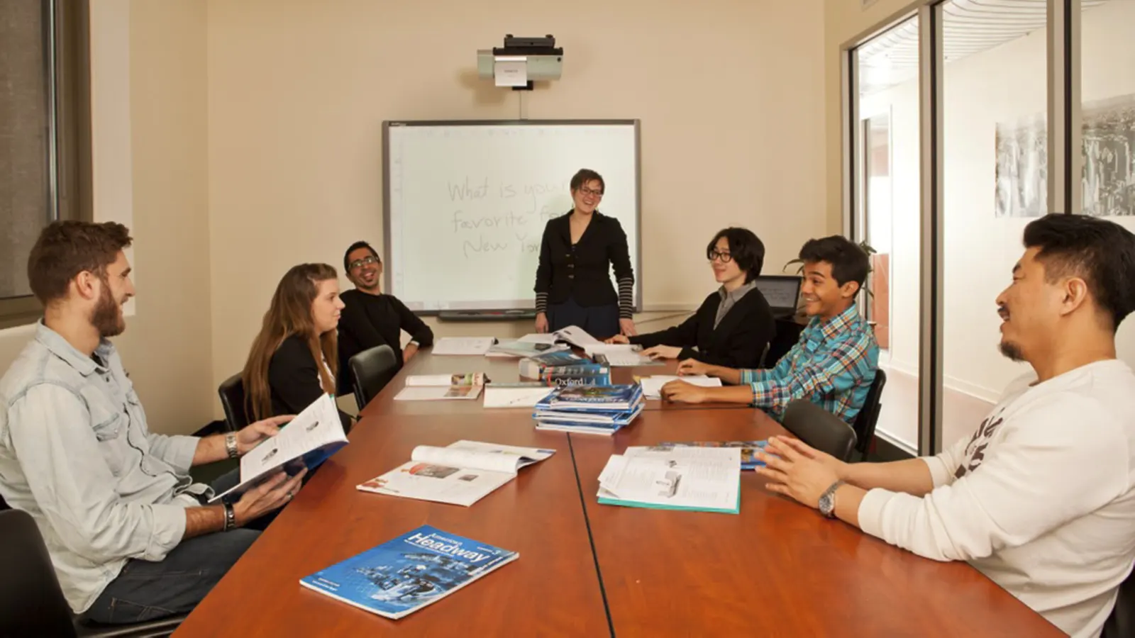 El curso de Executive English en Nueva York está dirigido a adultos, ejecutivos de empresa, empresarios y profesionales que dispongan de poco tiempo para poner al día su nivel de idioma y quieran mejorarlo para su proyecto personal o por su entorno profesional. El curso consiste en clases de inglés en grupos reducidos, de máximo 5 estudiantes por clase, para aprovecharlas al máximo. Las clases las imparten profesores nativos, muy preparados, que utilizan una metodología para dar confianza y dar las habilidades necesarias para mejorar el desarrollo del estudiante en un entorno empresarial. Con antelación al viaje, cada estudiante tiene que contestar un cuestionario con sus expectativas y necesidades en el idioma para realizar los grupos con antelación y asegurar un mayor progreso.